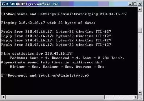 如果測試成功,表明本地網(wǎng)絡(luò)中的網(wǎng)卡和載體運(yùn)行正確。但如果收到0個(gè)回送應(yīng)答,那么表示子網(wǎng)掩碼不正確或網(wǎng)卡配置錯(cuò)誤或電纜系統(tǒng)有問題。